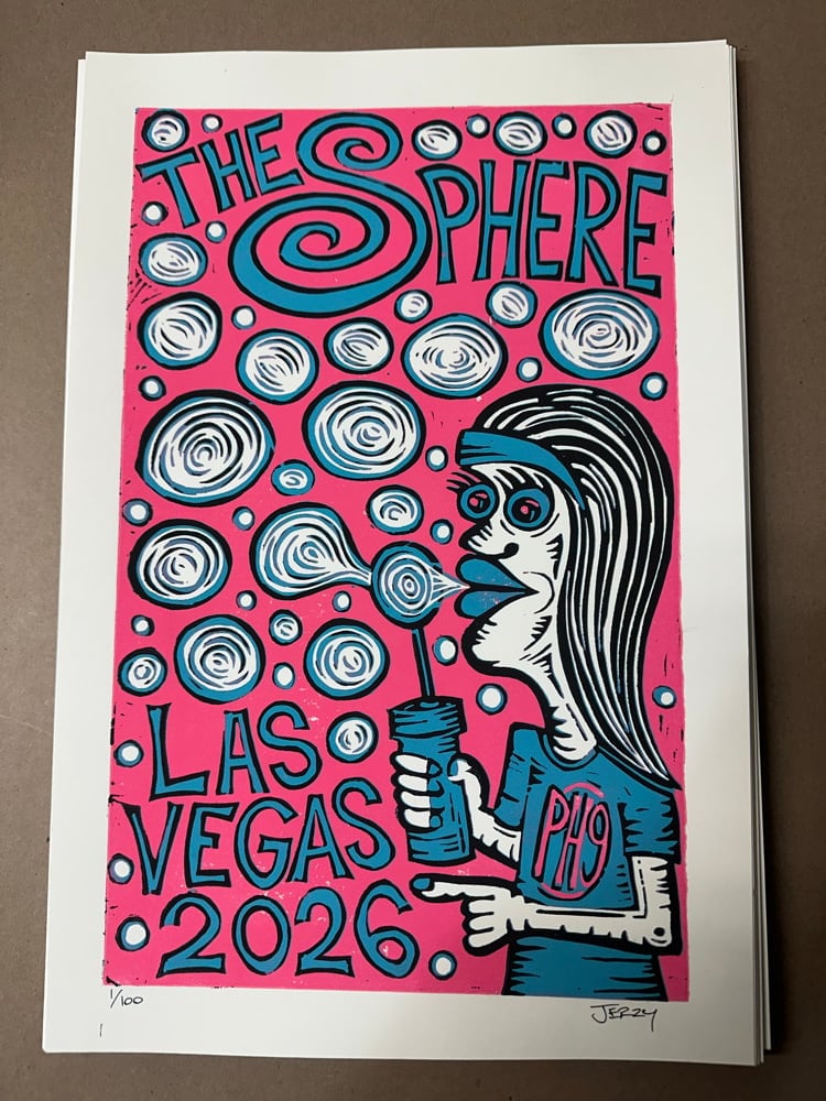 3 color linoleum block print limited to 100 prints!!! Sphere the sphere!!